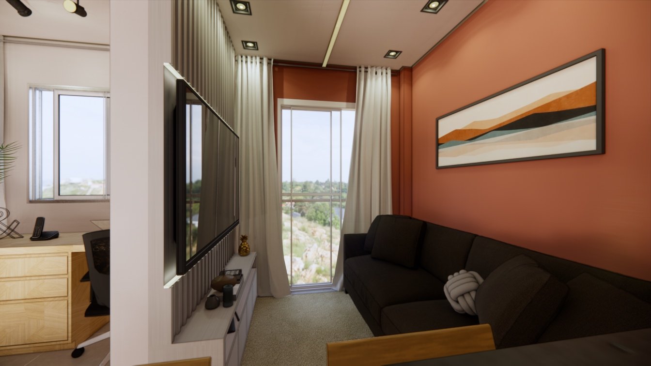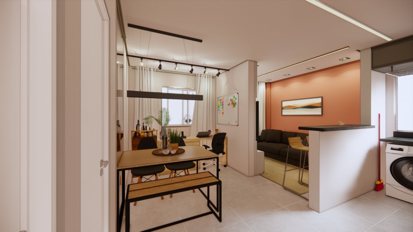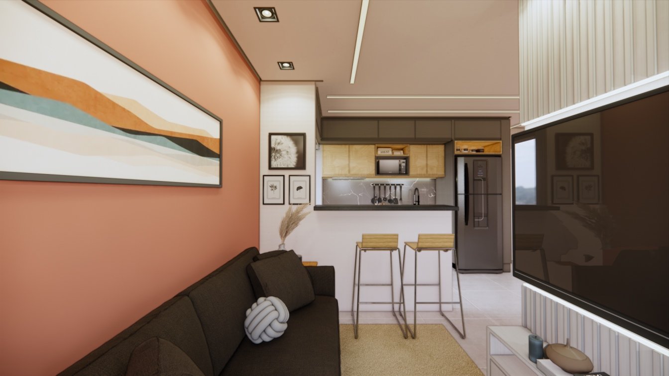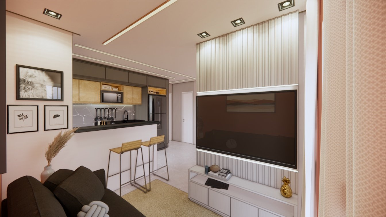 Este apartamento de 40m² foi projetado para um casal que prioriza o conforto. Cada detalhe foi cuidadosamente planejado para otimizar o espaço, oferecendo áreas confortáveis e acolhedoras. O uso de madeira traz um toque de calor e aconchego, enquanto a iluminação focal foi escolhida para criar diferentes cenários, tornando o ambiente versátil e agradável em todos os momentos.