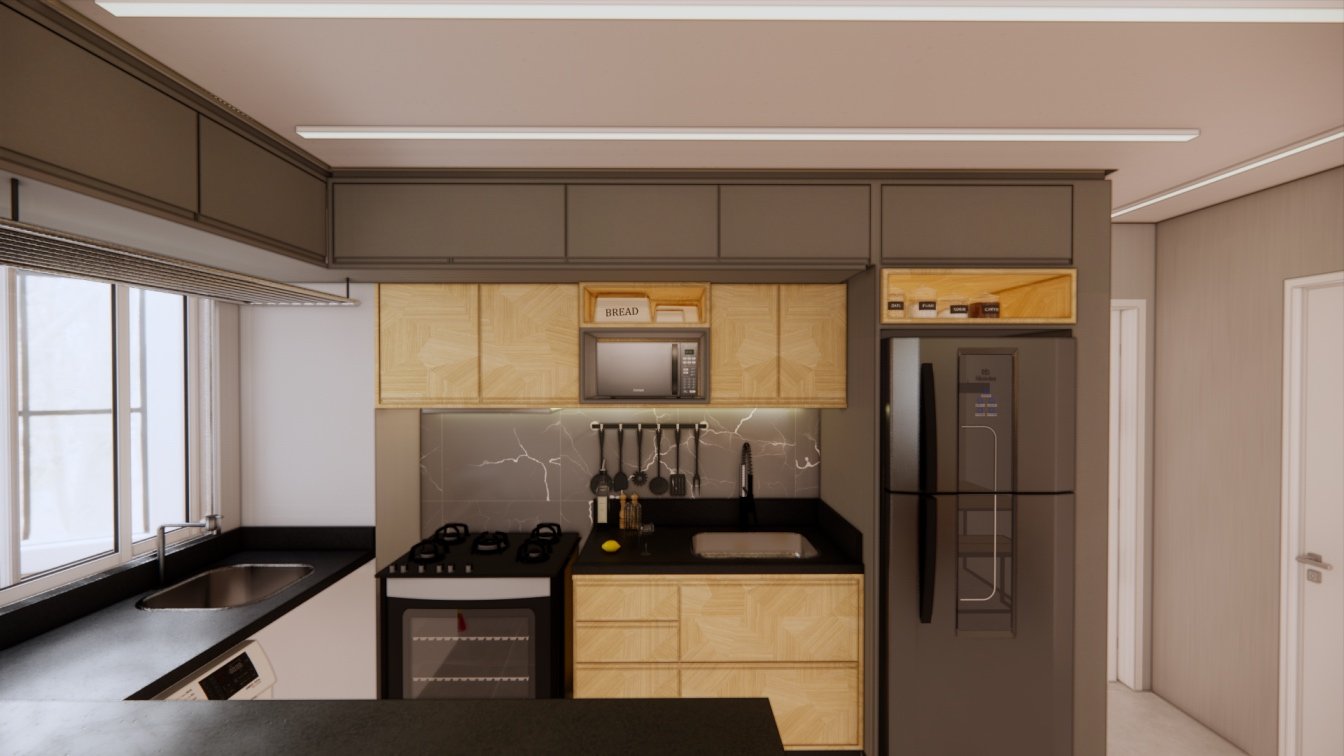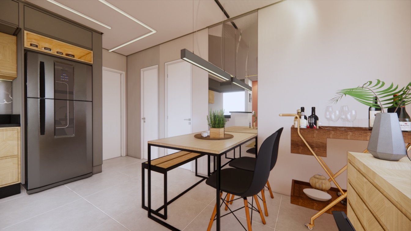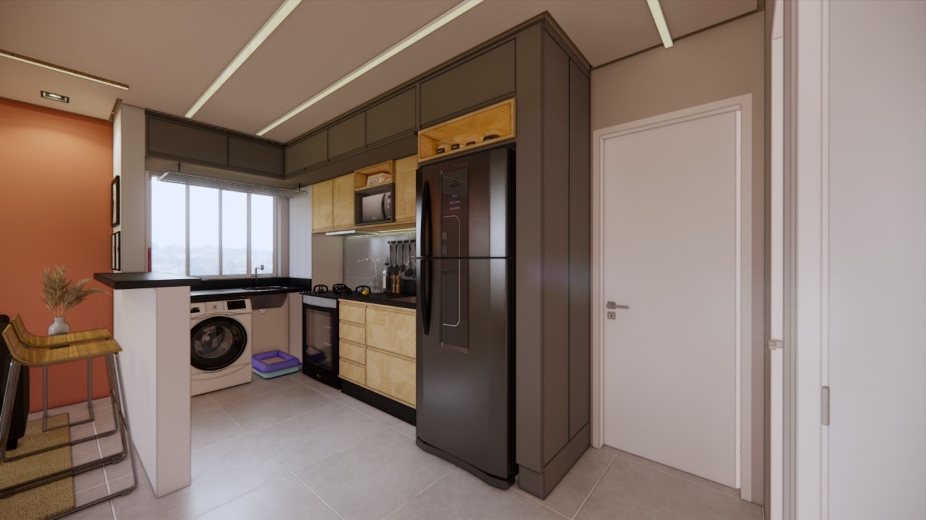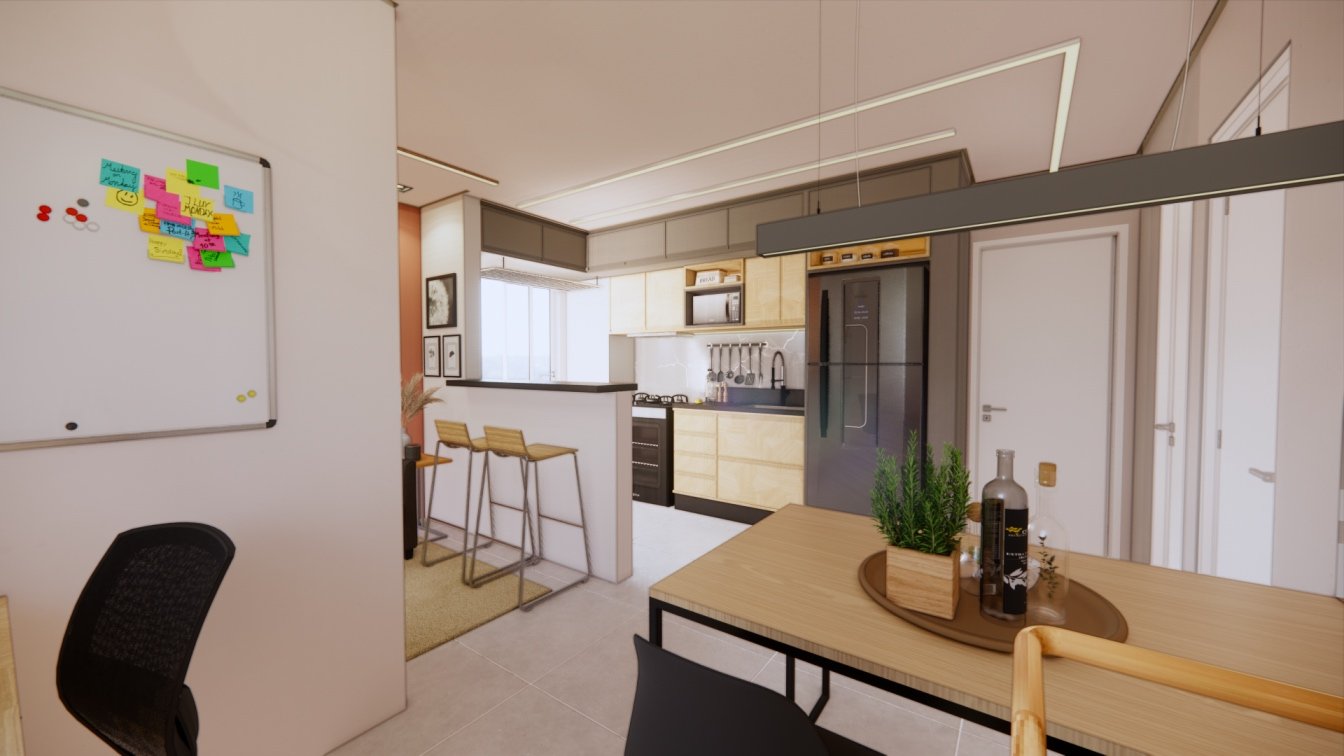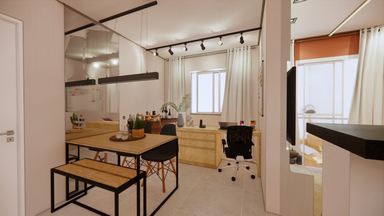 Este apartamento de 40m² foi projetado para um casal que prioriza o conforto. Cada detalhe foi cuidadosamente planejado para otimizar o espaço, oferecendo áreas confortáveis e acolhedoras. O uso de madeira traz um toque de calor e aconchego, enquanto a iluminação focal foi escolhida para criar diferentes cenários, tornando o ambiente versátil e agradável em todos os momentos.
